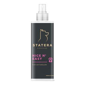 Statera Nice n' Easy er en effektiv leave-in spray som løsner floker og gjør børstingen enklere. Den kan brukes på både tørr og fuktig pels og etterlater pelsen blank og velstelt. Pelssprayen tilfører en luksuriøs glans samtidig som den mykgjør pelsen uten å være fet. Nice n' Easy passer til alle pelstyper og er enkel å påføre med sprayfunksjonen.