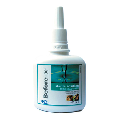 Før X-rengjøring med Tris-EDTA for ører og hud for hunder