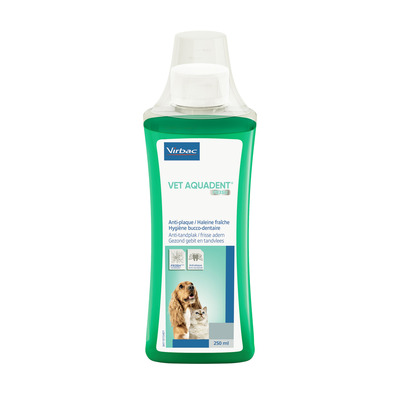 Virbac Vet Aquadent er et produkt til hunder og katter som bidrar til en friskere ånde og generell munnhygiene ved å minske plakkdannelsen.
