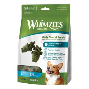 Whimzees Alligator S er morsomme og effektive tanngodbiter for små hunder