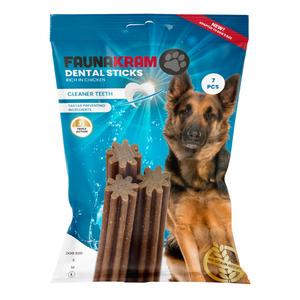 Faunakram dentalsticks med kylling (størrelse L) er et praktisk mellommåltid for store hunder for å forbedre munnhygienen