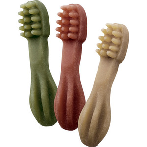 Vil du gi hunden din mulighet til å leke og optimere tannpleie samtidig? Tannbørsten fra Whimzees er utstyrt med riller og kanter som over tid gir friskere pust og renere tenner når hunden din tygger på den. Det er derfor en enklere og morsommere måte å fjerne plakk og tannstein på.