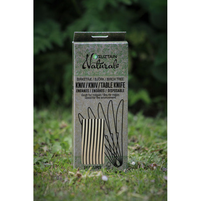 Det smarte engangsbestikket fra Suztain Naturals er fremstilt i birketre - er et godt og lettnedbrytbart alternativ til plastikk. Det har en fint og enkelt design, er godt å holde i og egnet perfekt til både bursdagsfest, skogstur, på farten - eller hjemme. I tillegg kommer bestikket i en 100% plastikkfri pappeske.