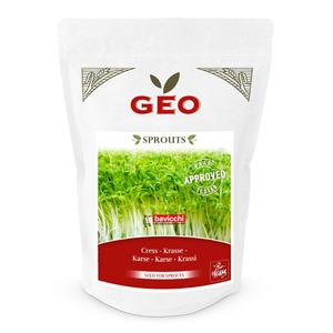 Geo Cress til spiring er økologiske karsefrø som egner seg for dyrking året rundt. Frøene er enkle å få til å spire og krever bare vann og et spirebrett eller fuktig bomullsunderlag. De små bladene spirer raskt og kan høstes etter bare noen få dager. Karse har en særegen smak og brukes ofte som ferskt pålegg på rugbrød, egg eller i salater. Produktet er økologisk og uten tilsetningsstoffer.