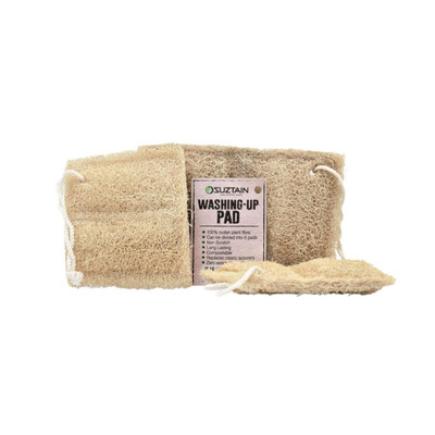 Suztain skuresvamp er laget av den kultiverte planten Luffa, og både snoren og sømmen er laget av bomull. Forpakningen har ingen plastinnpakning, og Suztain Luffasvamp er derfor helt plastfri.