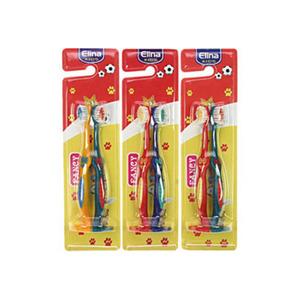 Elina tannbørste til barn har 2 tannbørster i en pakning. Børsten har morsomme farger og forskjellig design med gummi på skaftet, som sikrer barnet et godt grep.