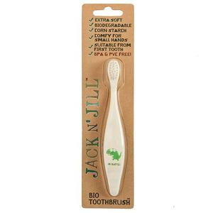 Jack N 'Jills barnetannbørste med koselig Dinosaurmotiv er laget av 100% maisstivelse og busten er av myk, resirkulerbar nylon.