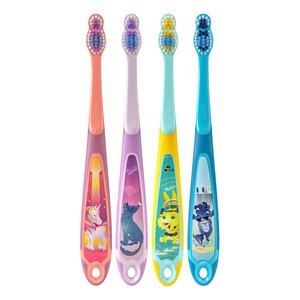 Tannbørsten har et ergonomisk håndtak som er lett for barnet å holde i, og et fargerikt design som gjør tannpussen til en morsommere og mer motiverende del av morgen- og kveldsrutinen. I tillegg er det en tannkremmarkør på børstehodet som hjelper til med å dosere riktig mengde tannkrem for barn.