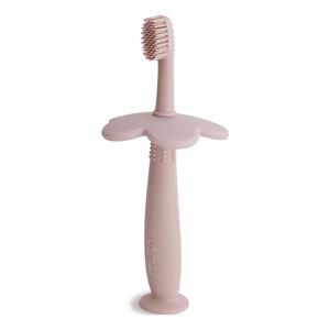 Mushie blomstertannbørste i fargen Blush er en barnevennlig introduksjon til selvstendig tannpuss.