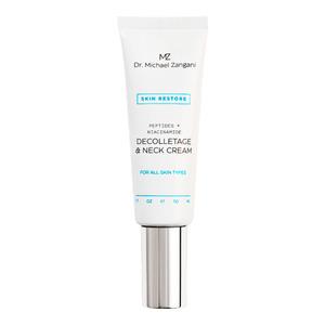 Dr. Michael Zangani Skin Restore Decolletage & Neck Cream er en eksklusiv krem for hals og brystparti. Kremen har en avansert formulering utviklet for å redusere synlige aldringstegn som fine linjer, rynker og slapp hud. Den bidrar også til å forbedre hudens fasthet og elastisitet. Beriket med kraftfulle ingredienser som peptider og niacinamid for en jevnere, glattere og mer ungdommelig hudtone.