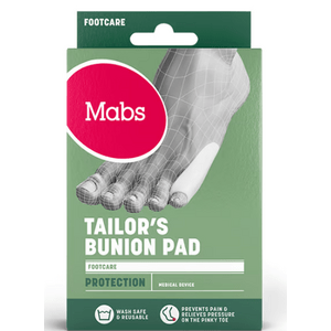 Mabs Beskyttelse gir beskyttelse ved akseavvik (bananform) på lilletåen. Yttersiden av foten tvinges utover, noe som gir rødhet og smerte. Dette produktet er laget av gele og formet slik at gelen slutter seg rundt lilletåen og går ned over yttersiden slik at akseavviket blir trykkavlastet og smerten lindres samt hard hud motvirkes.