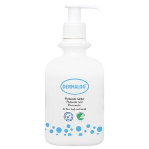 Dermalog flytende såpe er til daglig bruk. Såpen er mild og skånsom. Den er velegnet til håndvask, men kan også brukes i dusjen og badekaret til hele familien. Såpen inneholder ikke fargestoffer, lanolin, parabener, parfyme, kathon, formalin eller formalin frigjørende tilsetningsstoffer, og kan vanligvis brukes ved mistanke om allergi for andre hudpleiemidler. Dermalog hudpleieprodukter er spesielt utviklet til sensitiv hud. Dermalogs Produkter er utviklet av hudleger med den hensikt å pleie sensitiv hud hos barn og eldre samt personer med spesielt tørr og utsatt hud. Såpen inneholder glycerin som motvirker tørr hud. Bruk såpen på våt hud.