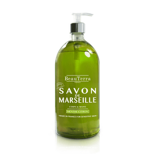 BeauTerras flytende såpe Marseille er produsert etter tradisjonelle fremstillingsmetoder på et av de siste eksisterende såpeverkene i Frankrike, under observasjon av en mester-såpefabrikant.