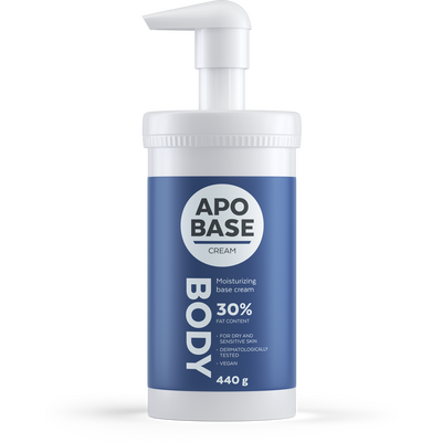 Apobase krem blå 440g er en fuktighetsbevarende og mykgjørende basekrem til forebygging og pleie av tørr og sensitiv hud