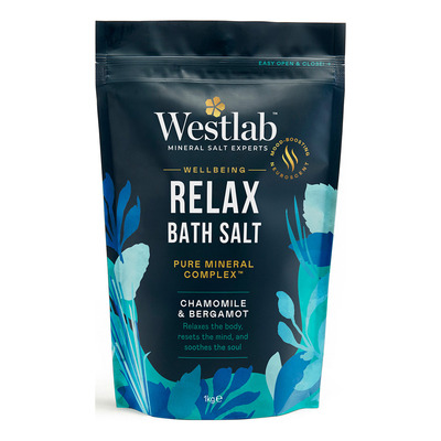 Westlab Relax Magnesium Bath Salt er et naturlig badesalt med Epsom-salt, Himalaya-salt og CBD-ekstrakt med en beroligende aromatisk duft