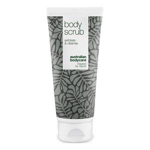 Australian Bodycare body scrub inneholder sandeltre-nøtteskall som virker eksfolierende, samt naturlig Tea Tree Oil. Skrubben behandler huden skånsomt mens den fjerner døde hudceller og urenheter i hudens porer. Huden etterlates myk og oppfrisket, samt beskyttet av den antibakterielle Tea Tree Oil. Den er særlig velegnet til å forebygge kviser på kroppen, inngrodd hår, talgknopper, hudormer og andre former for uren hud.