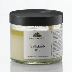 Urtegaarden Salt Scrub er en skånsom kroppsskrubb med nærende oljer og en frisk duft som fjerner døde hudceller