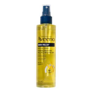 Aveeno Skin Relief Body Oil Spray er en delikat duftende kroppsolje som er utviklet for effektivt å pleie og nære svært tørr og sensitiv hud. Denne raskt absorberende oljesprayen har en formel basert på naturlige havre- og jojobaoljer som bidrar til å gjenopprette hudens naturlige beskyttelsesbarriere. Med sine 98 % naturlige ingredienser bidrar denne kroppsoljen til å forbedre hudens elastisitet og glatthet. Allerede etter én ukes bruk kan du oppleve en synlig glattere og smidigere hud. Uten fargestoffer og med en mild duft er denne kroppsoljen ideell for daglig bruk på sensitiv hud.