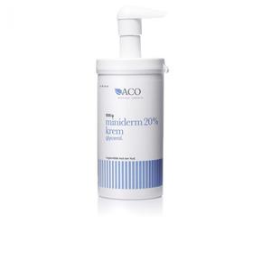 Miniderm krem 20% 500 gram pumpeflaske er et reseptfritt legemiddel med 20% glyserol for en mykgjørende effekt på huden