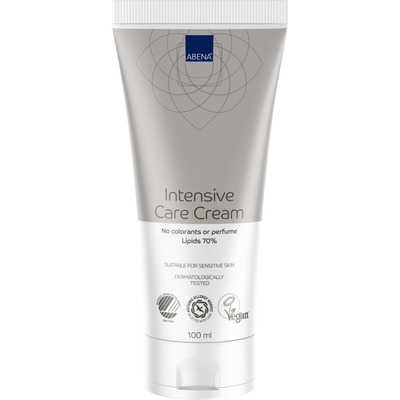 Abena Intensive Care er en krem med 70 % fett som egner seg til pleie av svært tørr, skadet og irritert hud, som atopisk hud, eksem og utslett.