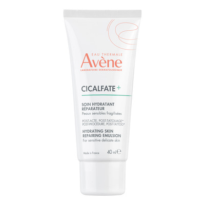Avène Cicalfate+ Emulsion er en lett og fuktighetsgivende emulsjon utviklet for sensitiv og svekket hud etter overfladiske dermatologiske behandlinger eller tatoveringer. Emulsjonen inneholder Avènes første aktive post-biotiske ingrediens, som bidrar til rask hudreparasjon. Avène Cicalfate+ Emulsion lindrer effektivt ubehag som varme, prikking og irritasjon og gir langvarig fuktighet. Formuleringen består av 91 % naturlige ingredienser og er parfymefri for maksimal hudtoleranse.