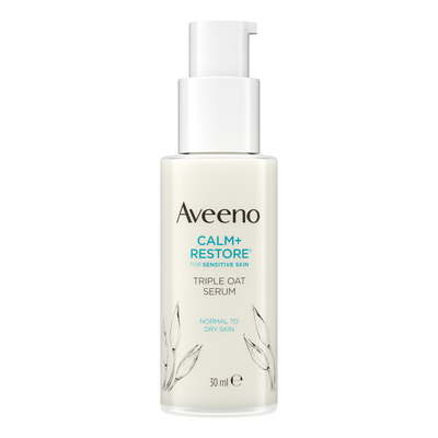 Aveeno Calm + Restore Triple Oat Serum er et lett og fuktighetsgivende serum utviklet for sensitiv, tørr og irritert hud. Det er beriket med et trippel havrekompleks bestående av havregryn, hageekstrakt og havreolje for å gi næring og bidra til å styrke hudens naturlige fuktbarriere. Feverfew har en beroligende effekt og reduserer rødhet og irritasjon, slik at huden føles mer behagelig.