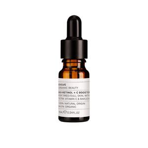 Bio-Retinol + C Booster fra Evolve er en oliebaseret booster-serum designet specielt til at opfriske og give ny glød til mad og trist hud. Den indeholder blandt andet antioxidantrige frugtolier fra hyben og havtorn, fugtbevarende hyaluronsyre samt fire potente vitaminer - A, C, F og E - som henholdsvis øger kollagenproduktionen, heler og beskytter hudens celler mod udefrakommende forurening samt genopbygger i dybden.