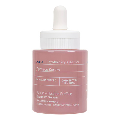 Korres Apothecary Wild Rose Spotless Serum er et effektivt, tofaset serum med 83,1 % naturlig innhold. Det er utviklet for å redusere mørke flekker og ujevn hudtone ved hjelp av 15 % Super C-vitamin, som absorberes raskere enn tradisjonelt C-vitamin. Serumet virker aktivt for å gjøre huden lysere og forbedre synligheten av fine linjer og rynker. Huden etterlates jevnere og med en sunn glød.