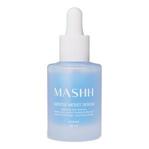 MASHH Gentle Moist Serum er et lett serum som absorberes raskt og gir huden en intensiv fuktboost. Serumet inneholder naturlig glyserylglukosid og fem typer hyaluronsyre med ulik molekylvekt som jobber sammen for å tiltrekke og binde fuktighet til huden. Resultatet er en silkemyk følelse og en hud i bedre balanse.