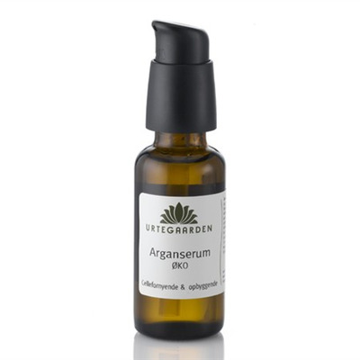 Urtegaarden Økologisk Arganserum virker forebyggende på alderstegn og hjelper med å holde huden spenstig.