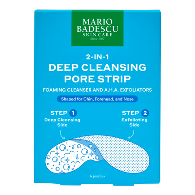 Mario Badescu 2-In-1 Deep Cleansing Pore Strip er et dobbeltvirkende renseplaster med AHA og fruktekstrakter