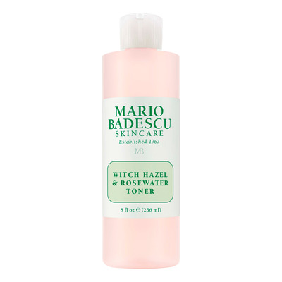 Mario Badescu Witch Hazel & Rosewater Toner inneholder rosenekstrakt og rosenolje, som er rike på antioksidanter og vitamin A. Toneren er egnet for daglig bruk og kan bidra til å lysne mørke flekker og redusere synligheten av fine linjer. Huden etterlates beroliget, fuktet og med fornyet glød.