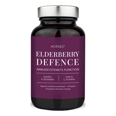 NORDBO Elderberry Defence er et vegansk kosttilskudd med hyllebærekstrakt og syrenøytralt vitamin C.