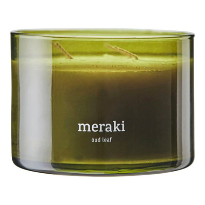 Meraki Oud Leaf Scented Candle er fri for giftstoffer og tungmetaller, og voksen er biologisk nedbrytbar. Lyset leveres i en elegant glassbeholder med grønn farge og oppfyller RAL-standardene. Forsterk atmosfæren i hjemmet ditt med dette utsøkte lyset.