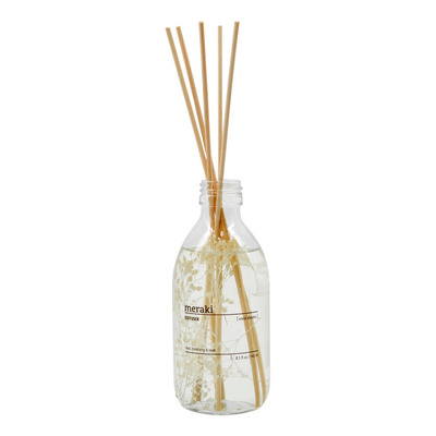 Meraki Diffuser Vivid Shades leveres med syv duftpinner som sakte slipper en frisk og livlig duft ut i rommet. Diffusoren leveres i en klar glassflaske med 240 ml duftolje. Den større flasken gir lengre holdbarhet enn standardstørrelsen. Duftpinnene absorberer oljen og avgir kontinuerlig duften til omgivelsene uten bruk av elektrisitet eller ild.