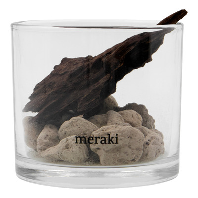 Meraki Lavastone & Wood Fragrance Diffuser Black er en dekorativ og funksjonell duftspreder som kombinerer porøse lavasteiner og drivved i en stilig glassdesign. Når du tilsetter noen dråper av din eteriske favorittolje, sprer steinene langsomt en behagelig og naturlig duft i rommet. Et estetisk og duftgivende element i hjemmet.