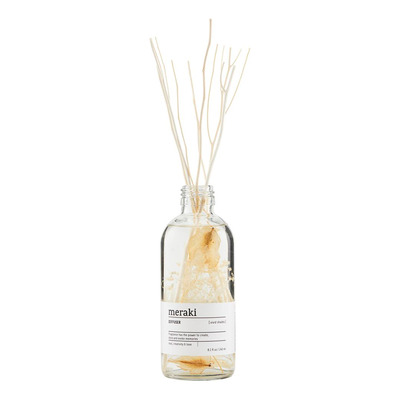 Skap en herlig atmosfære i hjemmet med Meraki. De vakre og ekstravagante luftfriskerne fra Spring/Summer 2020-kolleksjonen kommer i tre forskjellige duftvarianter i klare flasker prydet med tørkede blomster og duftpinner av rattan. Denne varianten, Vivid Shades, har en varm, mild og naturlig duft som virker avslappende på både kropp og sanser – perfekt til en aromatisk avslappingsstund. Bruk for eksempel luftfriskeren på badet eller som et fint element i interiøret i stuen.