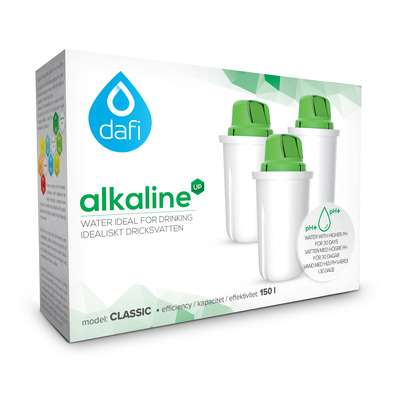 Dafi AquaBalance pH+ er en filterpatron utviklet spesielt til å øke drikkevannets pH-verdi fra ca. 7 til mellom 8,5 og 10. Et mer alkalisk (basisk) vann hjelper med å opprettholde en normal syre/basebalanse i kroppen.