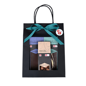 Posen er en smakfull vertinnegave, perfekt for noen som trenger litt ekstra kos. Produktene har deilige smakselementer av blant annet peppermynte og nougat – som gjør at den også som en søt, liten gave i juletiden. Vakker gavepose med 2 sjokoladeplater og dragémandler.