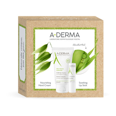 Innhold: A-Derma Håndkrem (50 ml.) og A-Derma Beroligende Leppestift (4 g.).