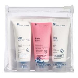 Ønsker du ekstra pleie og velvære for huden din? Da bør du prøve Faaborg Pharmas Helo-serie. Denne pakken inneholder tre gode produkter fra den populære Helo-serien som gjør den til en perfekt gave til noen du er glad i. Gavesettet inneholder Helo Hand, som er en beskyttende håndkrem for tørre, ru og skadede hender, Helo Anti-itch 70 %, som er en kløestillende og beroligende krem, og Helo Creme, som har et fettinnhold på 48 %.