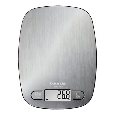TAURUS kjøkkenvekt i rustfritt stål er en presisjonsvekt med Tara-funksjon og måling av vann og melk