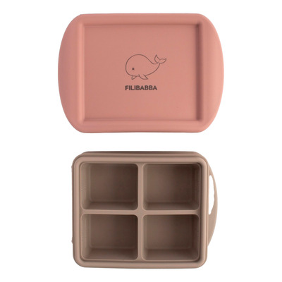 Filibabba Babymat Frysebrett 4x65ml - 2-pk - Rose Mix gjør det enkelt å tilberede, oppbevare og servere hjemmelaget babymat. Hvert brett inneholder fire rom som rommer totalt 270 ml, og de tettsittende lokkene holder maten fersk. De er laget av 100 % LFGB-sertifisert, næringsmiddelgodkjent silikon, noe som gir høy sikkerhet og lang holdbarhet for daglig bruk. Brettene tåler fryser, mikrobølgeovn og oppvaskmaskin, så lenge lokket fjernes før oppvarming og vask.