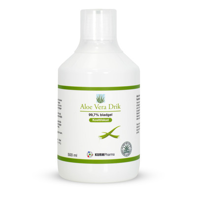 Kurm Pharma Aloe Vera Drink 99,7 % består nesten utelukkende av økologisk Aloe Vera, skånsomt utvunnet fra den indre fileten av plantens blader. Drikken er produsert uten bruk av kunstgjødsel eller sprøytemidler og har en naturlig mild smak. Aloe Vera bidrar til å opprettholde en normal fordøyelse og kan støtte tarmfunksjonen ved daglig bruk. Drikken drikkes kald og kan blandes med juice eller smoothies.