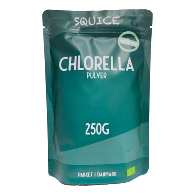 Squice Organic Chlorella Powder består av tørket og finmalt chlorella, en ferskvannsalge med et naturlig innhold av klorofyll. Pulveret er økologisk, vegansk og uten tilsetningsstoffer. Chlorella er kjent for sin grønne farge og brukes ofte som et tilskudd i et variert kosthold. Pulveret er pakket i Danmark og har en mild, litt bitter smak, noe som gjør det velegnet til å blande i smoothies og andre kalde retter. Pulveret er 100 % rent og inneholder bare alger.