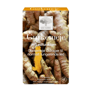 Gurkemeie fra New Nordic er et kosttilskudd i tablettform som er produsert med særlig fokus på deg som ønsker hjelp til å bevare en fleksibel leddfunksjon og god mobilitet. Tablettene inneholder ekstrakt fra gurkemeie, som fremstilles av en rot fra en urtelignende staude fra ingefærfamilien. Den stammer opprinnelig fra Sydøstasia hvor den i årtusener har blitt brukt som krydder. Gurkemeie har et naturlig innhold av det aktive stoffet, curcumin, som har antioksidante og antiinflammatoriske egenskaper.