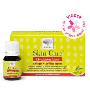 New Nordic Skin Care Hyaluron Shot hjelper innenfra med å gi deg en frisk og ungdommelig hud. Hyaluronsyre forekommer naturlig i huden og er med til å støtte hudens struktur, sammen med kollagen. Med alderen minsker det naturlige nivået av hyaluronsyre i huden, slik at huden mister sin fylde.