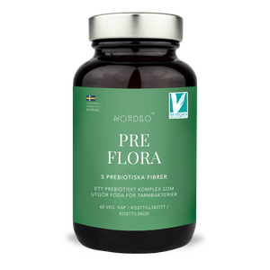 NORDBO PreFlora inneholder fem prebiotiske fibre som holder magen i gang og fungerer som mat for de gode bakteriene i tarmen. PreFlora er en fiberblanding som bidrar til en sunn tarmflora og et gunstig miljø for melkesyrebakterier. Produktet fungerer godt som et supplement til LactiTotal eller LactiWoman.