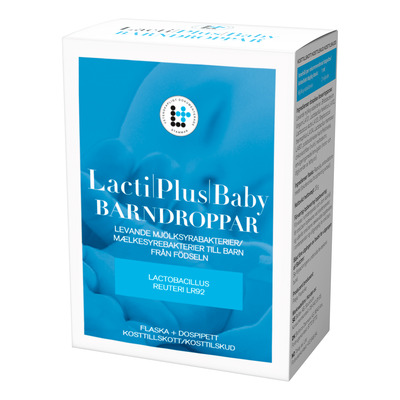 LactiPlus Baby Barnedråper inneholder 100 millioner levende melkesyrebakterier (Lactobacillus reuteri LR92) per dagsdose. Dette kosttilskuddet er spesielt utviklet for spedbarn og kan brukes fra fødselen av. Den patenterte beholderen med skrukork gjør det enkelt og hygienisk å dosere dråpene. LR92-stammen er en av de mest undersøkte probiotiske stammene for spedbarn og er valgt med fokus på den følsomme tarmfloraen hos små barn.