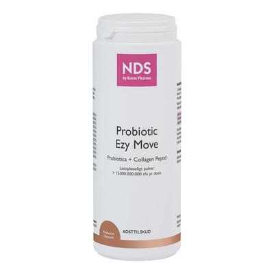 NDS Probiotic Ezy Move er utviklet for deg som ønsker en allsidig kombinasjon av kollagenpeptider, prebiotiske fibre og et bredt utvalg av bakteriestammer. Formelen inneholder både laktobaciller og bifidobakterier i en variert sammensatt profil som utgjør en støttende del av produktsammensetningen. Pulveret er bygget på en nøytral maisstivelsesbase med inulin og oligofruktose fra cikorie - prebiotiske fibre som bidrar til normal fordøyelse og fordøyelseskomfort. Sammen med kollagenpeptidene gir det en komplett og balansert formulering som mange velger i perioder med fokus på mobilitet og daglig velvære.